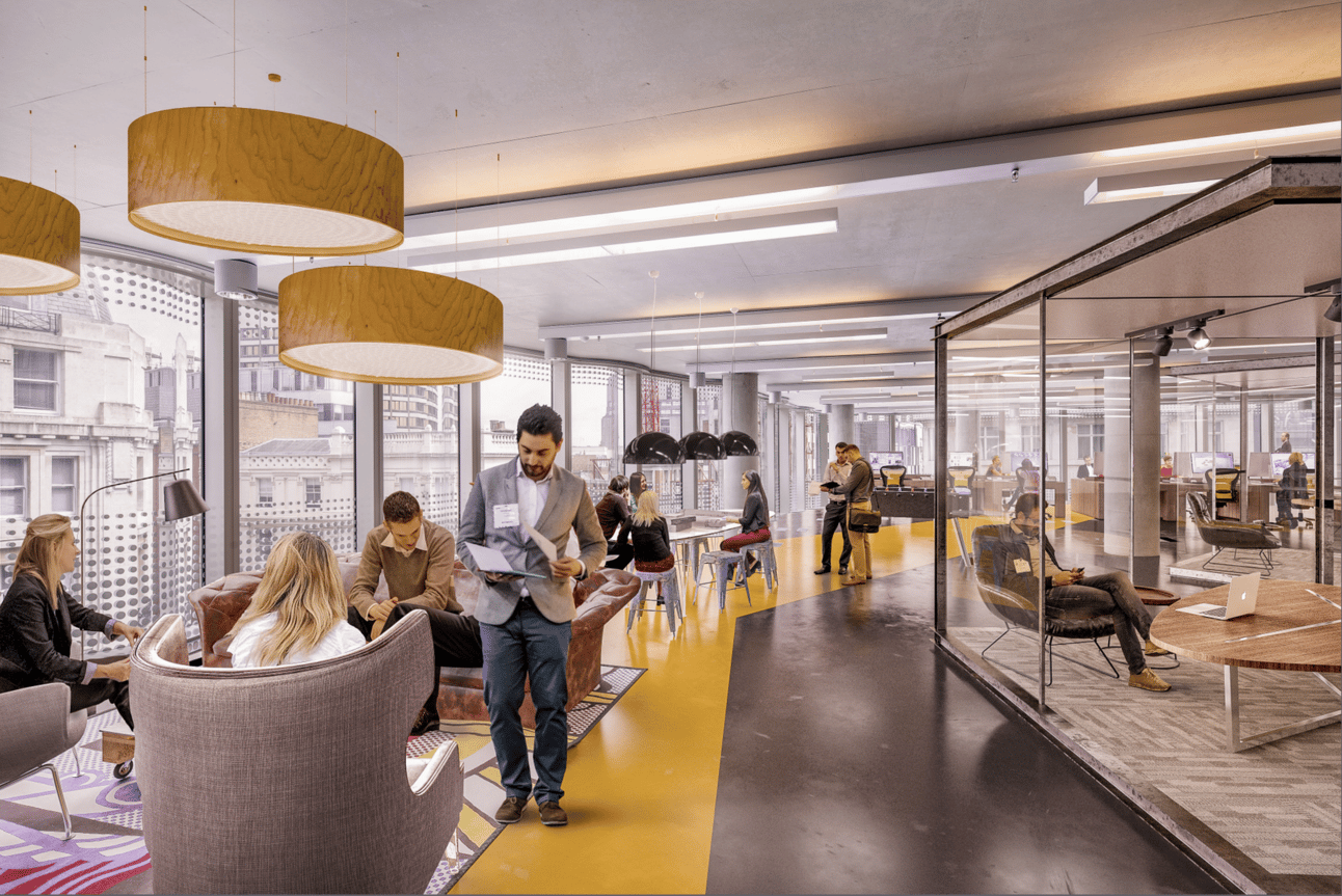 From the people we place in the image to the furnishings and decoration to the views glimpsed outside. All geared to telling the story of a central London space fit for thriving creative businesses © Blink Image Limited