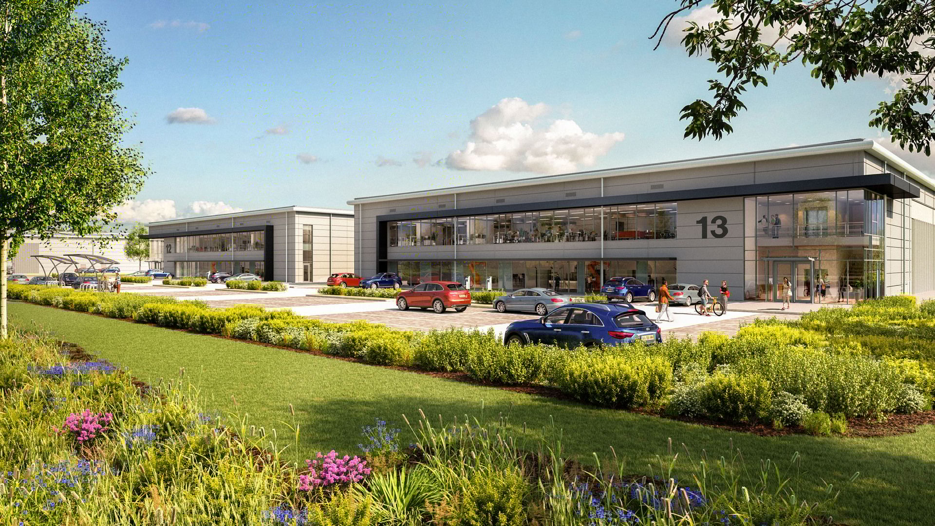 Ground level CGI we did for Albion Land’s Catalyst Bicester - Landscaping was a critical part of the story | © Blink Image