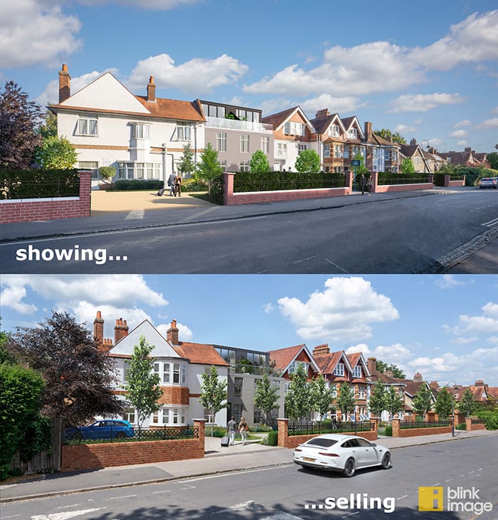 But there’s a difference between visuals that simply show a development and those that sell it.