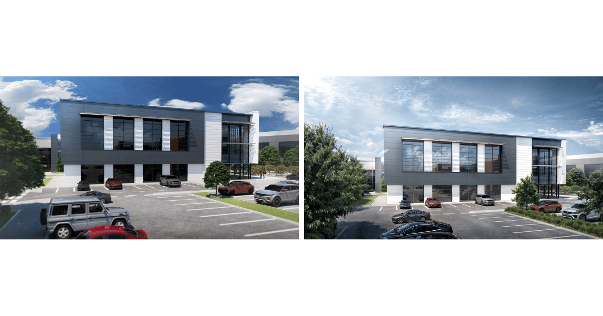 Industrial and Office Exterior Examples: Before and Afters - By expanding the canvass, reframing the image, and making strategic improvements to lighting, composition, landscaping etc, we were able to bring the images up to a marketing grade quality | © Blink Image Limited